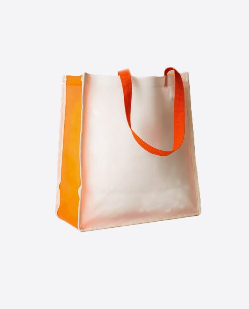 Sacola feminina em PVC colorido com alças em fita de nylon